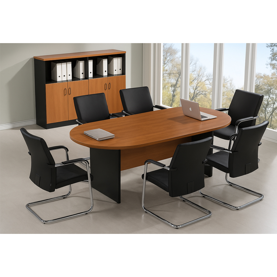- Elegant Design: Sleek oval meeting table with a walnut finish tabletop and contrasting black base.