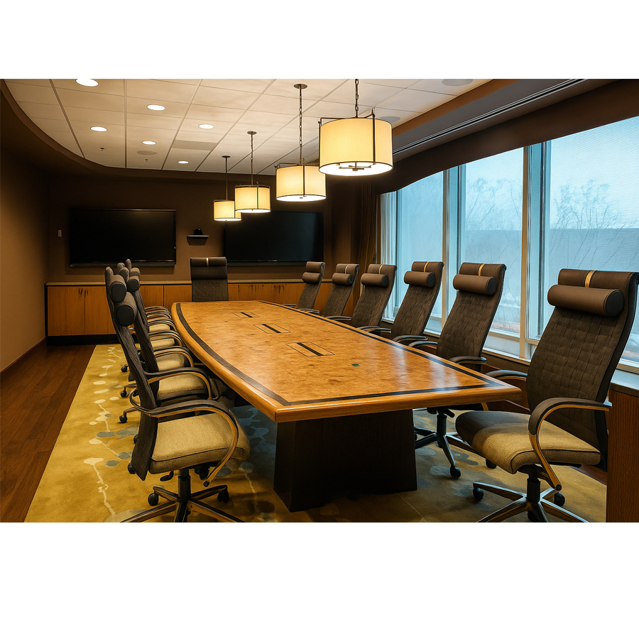 • Modern Lighting: Pendant lights create a warm, professional atmosphere, enhancing focus during meetings.