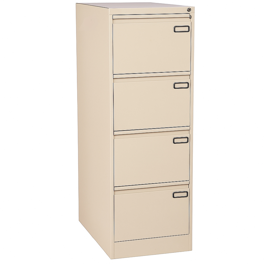 • 4-drawer metal filing cabinet for A4 and foolscap file organization.