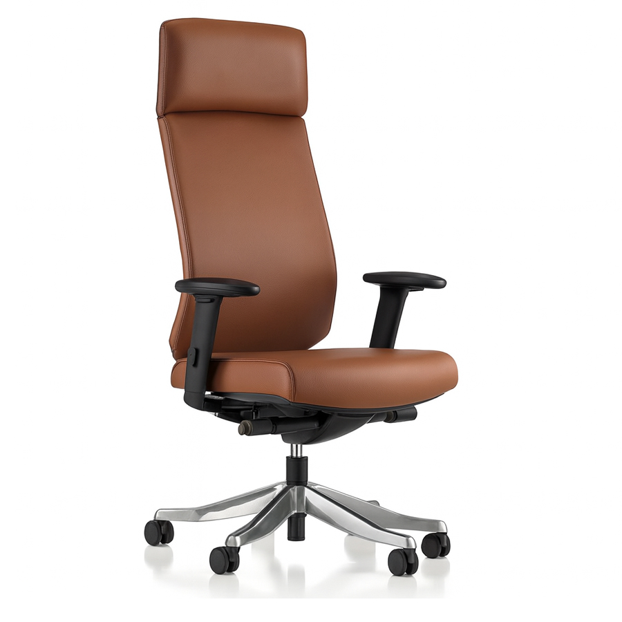 - The High Back Executive Chair in rich brown leather exudes sophistication and comfort, making it a perfect addition to modern executive offices and workspaces.