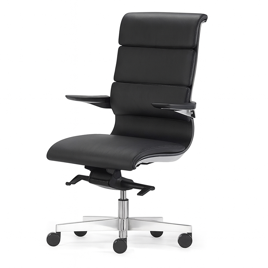 • Its premium black leather upholstery exudes professionalism while offering a soft, luxurious feel.