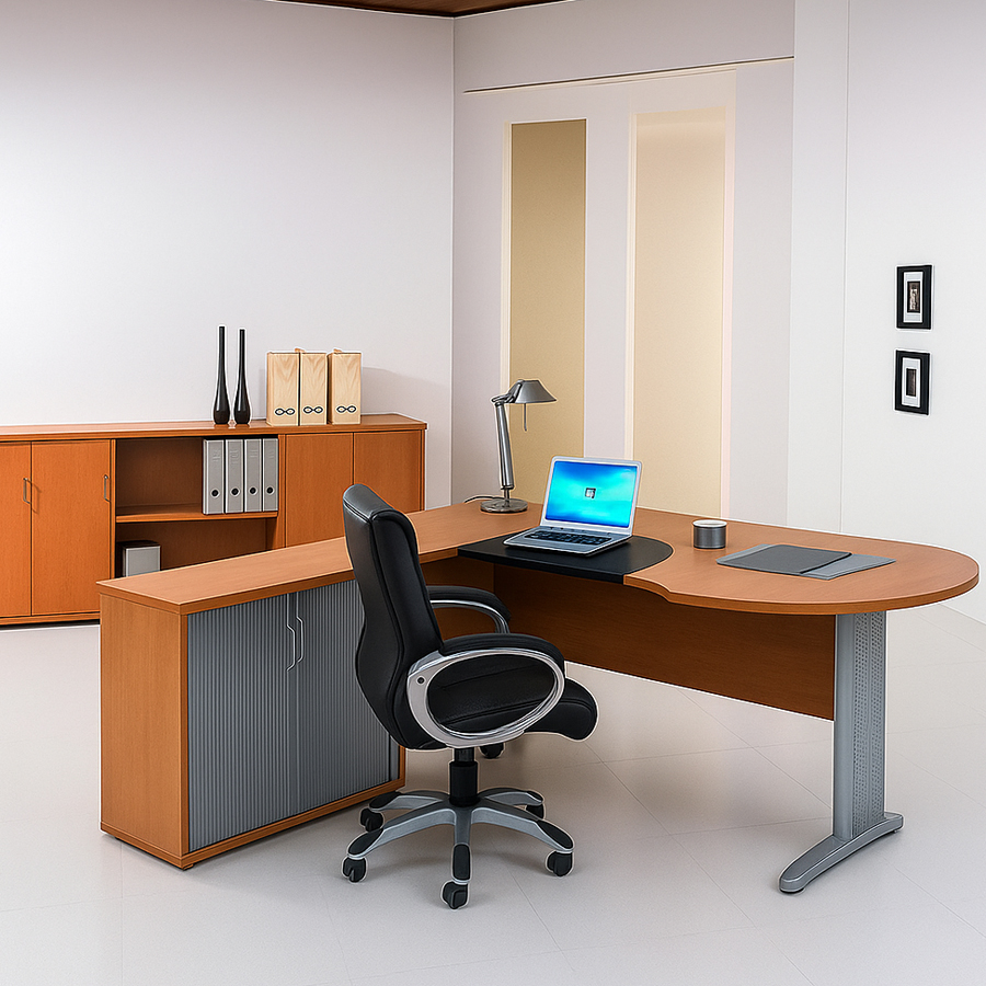 • Contemporary L-Shaped Design: Designed for efficiency, combining style and practicality for modern executive workspaces.