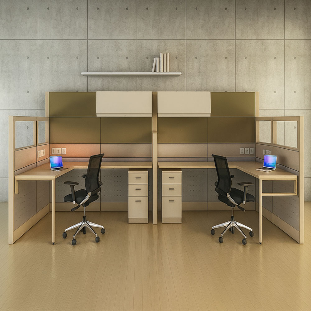 • Built-In Power Access: Each workspace includes integrated electrical outlets, enabling safe and efficient cable management for computers, monitors, and office electronics.